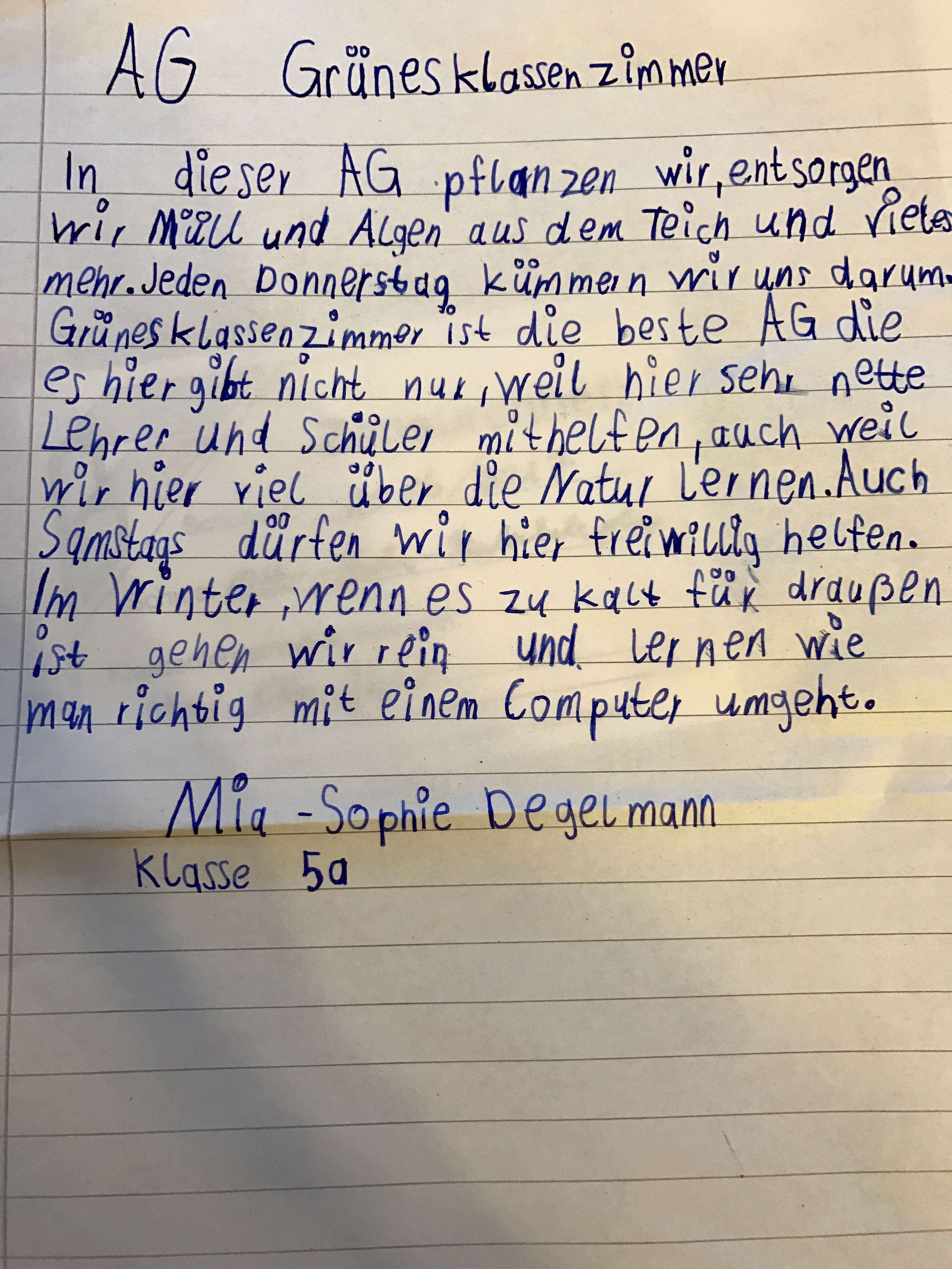 AG Grünes Klassenzimmer Veröffentlicht am 6. November 2016 von Christian Jäger Mia-Sophie, Klasse 5a, hat einen kleinen Beitrag zur AG Grünes Klassenzimmer geschrieben: