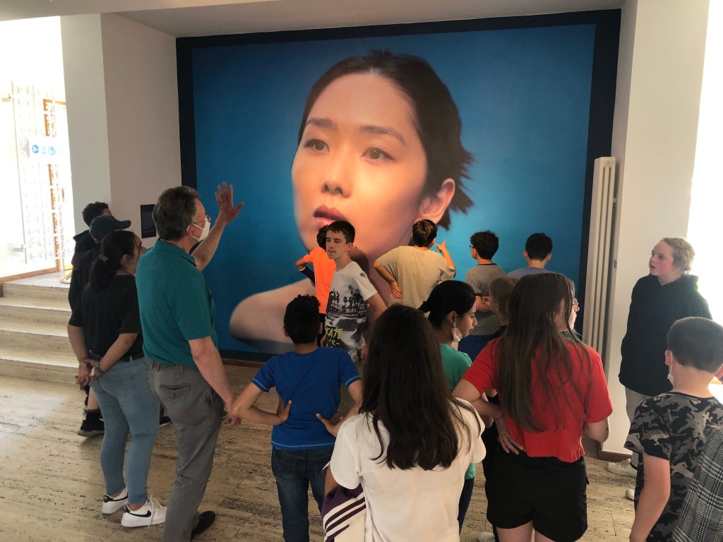 Die Schülerinnen und Schüler der Klasse 5b besuchen im Rahmen der Kunst AG am Nachmittag das Haus Beda. Noch bis zum 24. Juli sind dort in der „Neuen Galerie“ die Bilder des weltweit anerkannten Fotokünstlers Roland Fischer zu sehen. Die großformatigen Fotoarbeiten haben eine beeindruckende Wirkung auf die Schülerinnen und Schüler und faszinieren durch ihre außergewöhnlichen Bildideen. Besonders außergewöhnlich: Eine ganze Wand mit Portraitfotografien des Künstlers von hunderten Pilgern auf dem Jakobsweg.