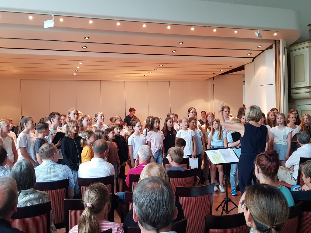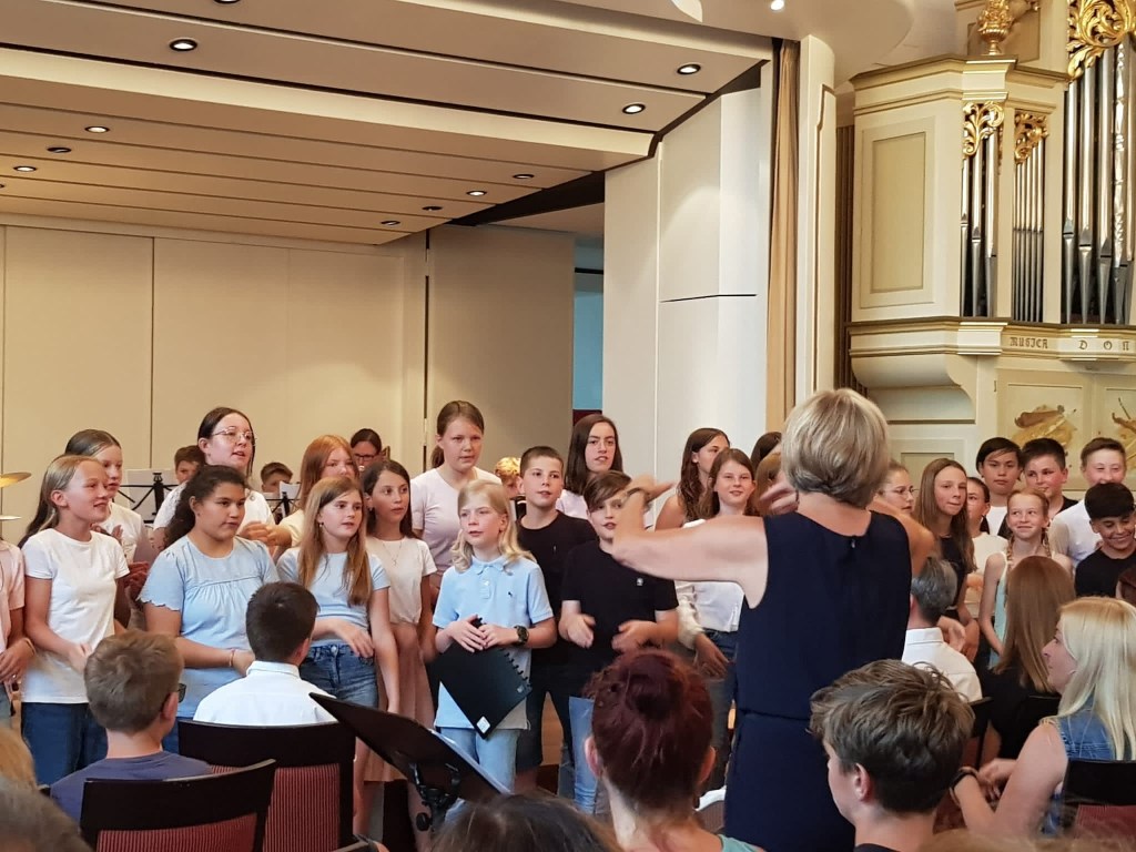 Der Chor der gemeinsamen Orientierungsstufe der Otto-Hahn-Realschule plus und des St. Willibrord Gymnasiums und das Schulorchester der OHR+ haben wieder ein mitreißendes Schulkonzert geboten. Bereichert wurde das Konzert zudem von Beiträgen der Klasse 6a, 6d und 6s sowie der Solistin Elisabeth Bures am Klavier. Die rund 100 Mitwirkenden unter Leitung von Gaby Wolsiffer, Sabine Sonnen und Andreas Blitsch freuten sich nach dem gemeinsamen Finale über einen langanhaltenden Applaus des begeisterten Publikums.