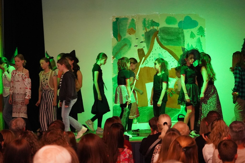 Am Montag, dem 8. Juli präsentierte die Klasse 5i gemeinsam mit ihrer Klassenlehrerin Gaby Wolsiffer das Ergebnis ihrer Projektarbeit. Mit Hilfe des Schauspielers und Regisseurs Stephan Vanecek hat die Klasse das Schauspiel „Die kleine Hexe“ in einer Bearbeitung von Stephan Vanecek einstudiert und Eltern, Freunden und Verwandten im Haus der Jugend vorgeführt. Die jungen Talente haben bewiesen, dass man mit Fleiß und Teamgeist einiges schaffen kann und sind förmlich über sich hinausgewachsen.