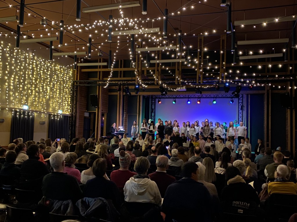 In vorweihnachtliche „Dezemberträume“ wurden die zahlreichen Besucher des traditionelle Adventskonzerts der Otto-Hahn-Realschule plus Bitburg und der gemeinsamen Orientierungsstufe mit dem St. Willibrord-Gymnasium im festlich beleuchteten Saal des Hauses der Jugend versetzt. Aber nicht nur das gleichnamige Lied von Rolf Zuckowski begeisterte das Publikum, sondern das gesamte vielfältige Programm von „Hört der Engel helle Lieder“ über „Jingle Bells“ bis hin zum gemeinsam von allen Akteuren und Zuhörern gesungenen „Fröhliche Weihnacht“. Gestaltet wurde das besinnliche Programm vom Schulorchester der Otto-Hahn-Realschule plus, dem Chor der gemeinsamen Orientierungsstufe, der von einigen Schülern der 8a unterstützt wurde sowie den beiden Solisten Nele Esch und Aaron Küppers. Ausgewählte und zum Nachdenken anregende Texte, die von Bernadette Faber vorgetragen wurden, bereicherten das beeindruckende Programm. Langanhaltende stehende Ovationen des Publikums waren der verdiente Lohn für alle Akteure sowie die verantwortlichen Lehrer Gaby Wolsiffer, Andreas Blitsch, Steffi Zenner und Maike Wendt.