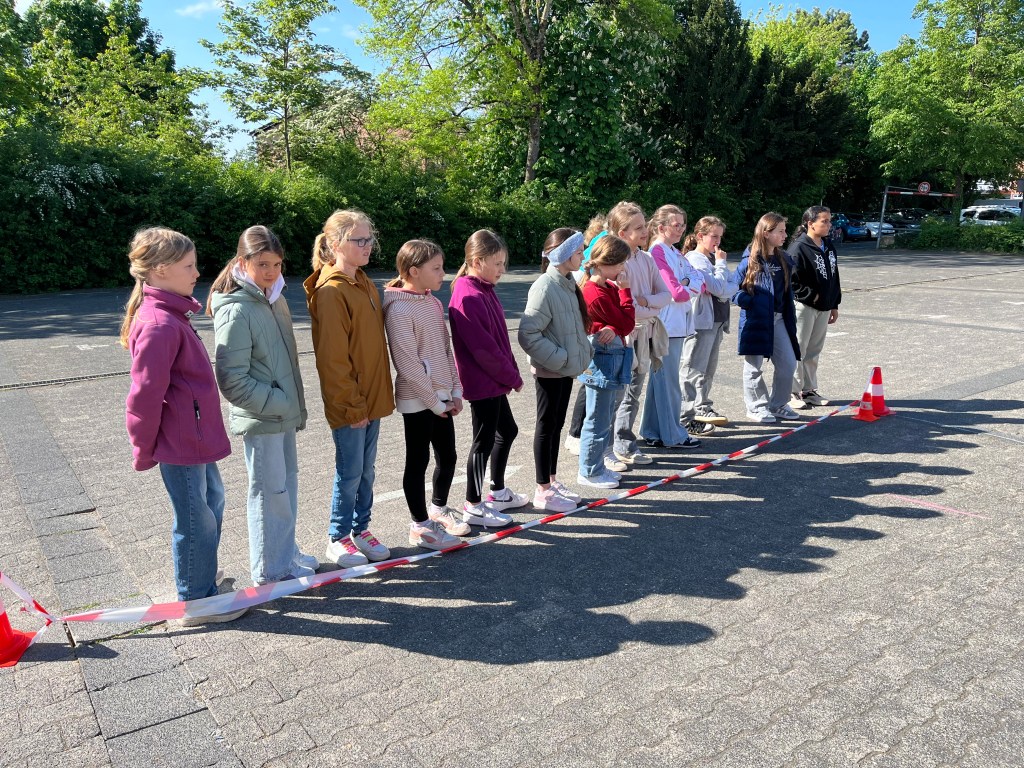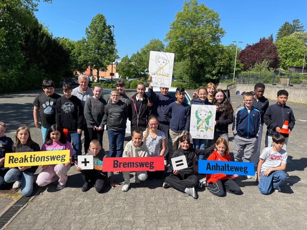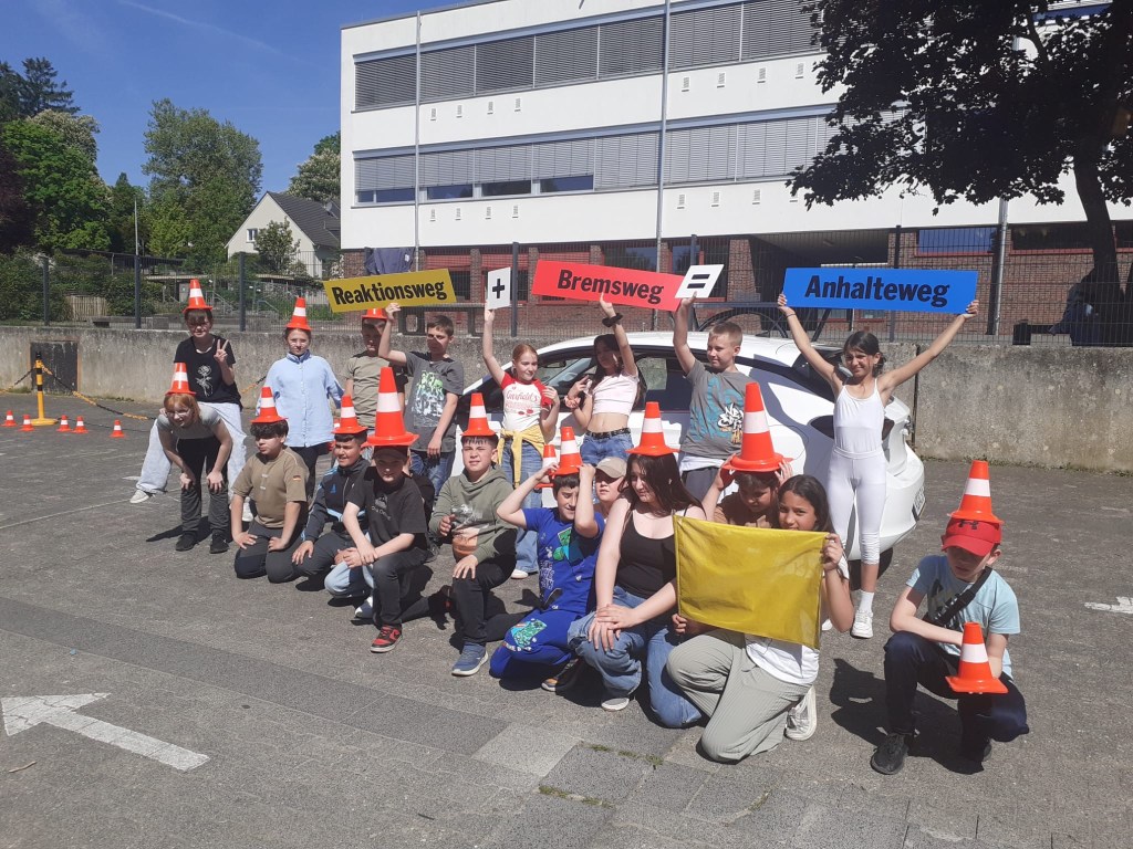 Mit dem Besuch der Gemeinsamen Orientierungsstufe veränderte sich der Schulweg für viele Kinder maßgeblich, sodass sie nun oft nicht mehr zu Fuß in die Schule laufen, sondern den Weg zum und vom ZOB auf sich nehmen. Demzufolge ist es umso wichtiger, dass die Schülerinnen und Schüler für Gefahren des Straßenverkehrs sensibilisiert werden, Geschwindigkeiten einschätzen lernen und das eigene Verhalten im Straßenverkehr reflektieren. Auf spielerische Art und Weise lernten die Kinder den Reaktions-, Anhalte- und Bremsweg kennen. Aber auch die für ihre Altersklasse so relevante Frage „Wann darf ich ohne Kindersitz vorne sitzen?“ wurde besprochen und daran anknüpfend die richtige Sicherung im Auto visualisiert. Das Programm-Highlight für einige Schülerinnen und Schüler stellte die kurze Fahrt im ADAC-PKW mit anschließender Gefahrenbremsung dar. Auch hier verstanden sie nochmals am realen Beispiel, dass sich der Anhalteweg aus Reaktionsweg und Bremsweg zusammensetzt. Wir bedanken uns ganz herzlich bei den Referenten der ADAC-Stiftung für die altersgerechte Durchführung des Programms „Achtung Auto 2.0“, das den Schülerinnen und Schülern unserer 5. Klassen nicht nur wichtiges Wissen vermittelte, sondern auch viel Spaß!