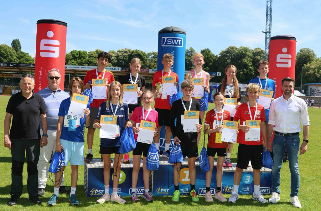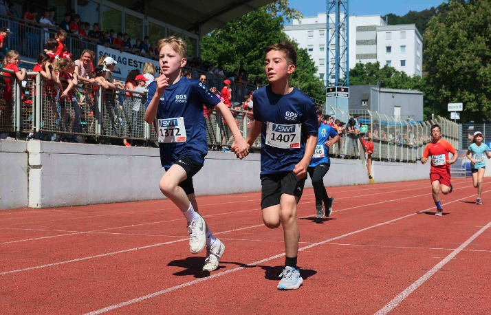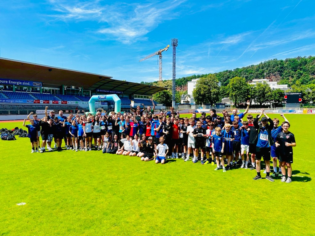 Erstmals waren das St. Willibrord-Gymnasium und die Otto-Hahn-Realschule plus mit über 100 Schülerinnen und Schülern bei den SWT-Schullaufmeisterschaften in Trier dabei, die seit 2005 ausgetragen werden. Dabei hatten wir zusammen, trotz der in Trier herrschenden Hitze, großen Spaß und erreichten viele gute, einige sehr gute und ein phänomenales Ergebnis mit Gesamtplatz zwei im 2012er-Jahrgang, den Mayar Ghader in einer Zeit von 5:30min über die 1,5km lange Strecke erreichte.