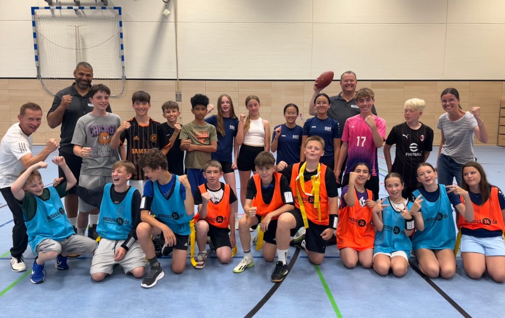 Am 26.06.2025 erlebte die Klasse 6sg der Otto-Hahn-RSplus einen sportlichen Projekttag der besonderen Art: Unter der Leitung von Klassenlehrerin Frau Densborn und Sportlehrer Herr Gößinger drehte sich alles um das Thema American Flag Football.