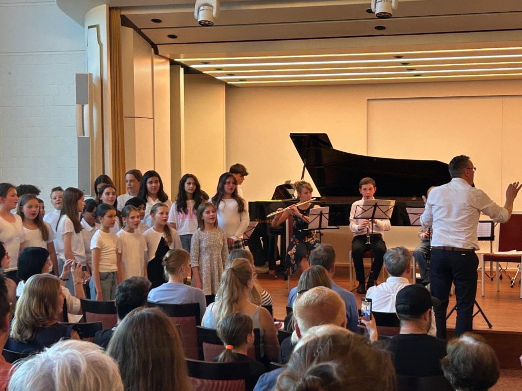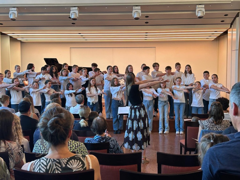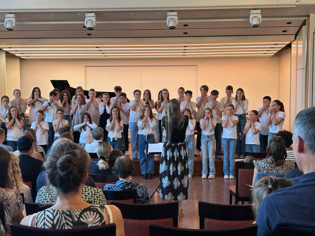 Das Schulkonzert der Otto-Hahn-Realschule plus Bitburg im Haus Beda war ein schöner Erfolg. Der Abend wurde eröffnet vom Chor der gemeinsamen Orientierungsstufe der OHR+ und des St. Willibrord Gymnasiums unter Leitung von Gaby Wolsiffer und Maike Wendt. Die rund 60 Schülerinnen und Schüler des Chores begannen das Konzert mit dem schwungvollen Song „Wenn wir Kinder musizieren“ von Martin Volz. Es folgten u.a. ein „Abendlied“ und „Sieh auf deinem Weg“ von Bruno Coulais. Das Publikum war begeistert vom unbekümmerten und fröhlichen Auftritt des Chores. Neo Larusch am Klavier setzte einen weiteren Höhepunkt mit selbst verfassten Klavierarrangement. Das Schulorchester unter Leitung von Steffi Zenner und Andreas Blitsch beeindruckte mit Songs wie „Mamma mia“, „Let’s get loud“ und „Get lucky“. Es folgte der gefühlvolle Song „Be a light“, gemeinsam dargeboten von Chor und Orchester. Traditionell wurde zum Schluss mit dem Publikum und allen Beteiligten ein gemeinsames Volkslied gesungen. Die rund 80 Akteure wurden mit einem lang anhaltendem Applaus beschenkt.