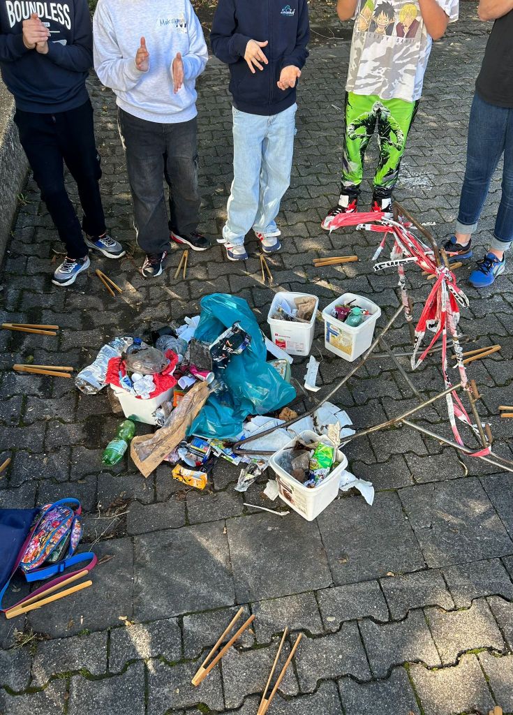 „War das cool!“ und „Angie, wann kommst du nochmal?“ sind das Resumee eines erlebnisreichen Projekttages der Klasse 5d zum Thema „Umweltschutz – Plastik in den Ozeanen“. Zu Besuch war Meeresbiologin Angie Jensen von der Universität Trier, die ihre Dienste im Namen von „thebluemind“ interessierten Schülerinnen und Schülern anbietet. „Den blauen Planeten müssen wir schützen“, betont die passionierte Wissenschaftlerin immer wieder. Doch nur durch Erklärungen lernen Kinder nicht, deshalb packte sie schon schnell ihre Kisten aus, in denen sich verschiedenste Schätze verbargen – unter anderem für jedes Kind eine Greifzange und eine Mülltüte und ab ging es auf den Schulhof. Alles wurde aufgehoben, dass auf dem Boden landete und so manch einer wunderte sich über die Dinge, die den Weg in den Mülleimer nicht fanden. „Alles, was ihr nun aufgesammelt habt, landet schon nicht mehr in Bächen, Flüssen und Meeren“, lobte Angie die Kinder, die voller Eifer sogar in den Hecken herumkrabbelten. Highlight des Tages war jedoch für alle, dass unsere Meeresexpertin auch für jedes Kind VR-Brillen dabei hatte und uns in die verschiedenen Ebenen der Unterwasserwelt entführte. Hier begegneten uns Rochen, Fischschwärme in den schillernsten Farben, Haie und eine faszinierende Unterwasservegetation. Spätestens jetzt war jedem klar, dass dieser Raum geschützt werden muss, „auch, wenn man sogar im Marianengraben schon Plastik gefunden hat“, so die ambitionierte Naturschützerin.