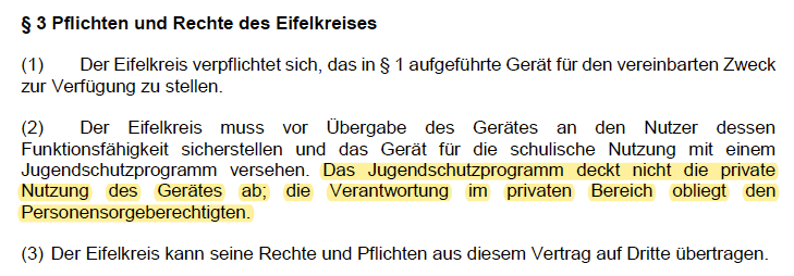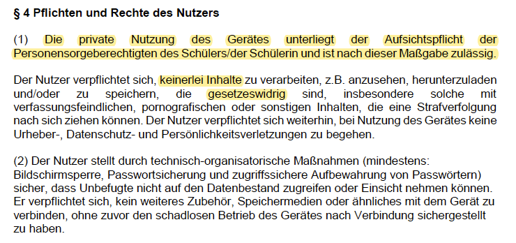 Wichtige Infos aus dem unterschriebenen Nutzungsvertrag: